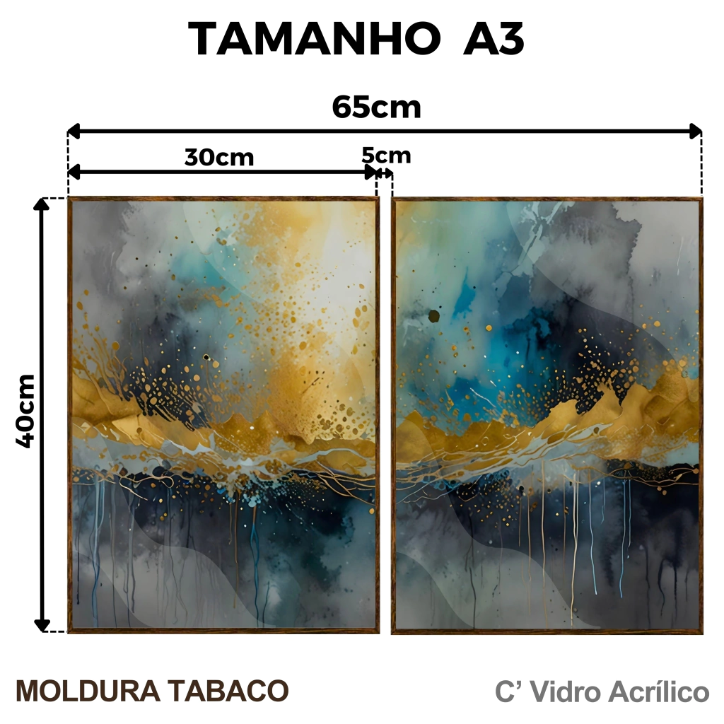 • Medidas: 30cm de largura x 40cm de altura cada quadro / Total: 60cm de largura