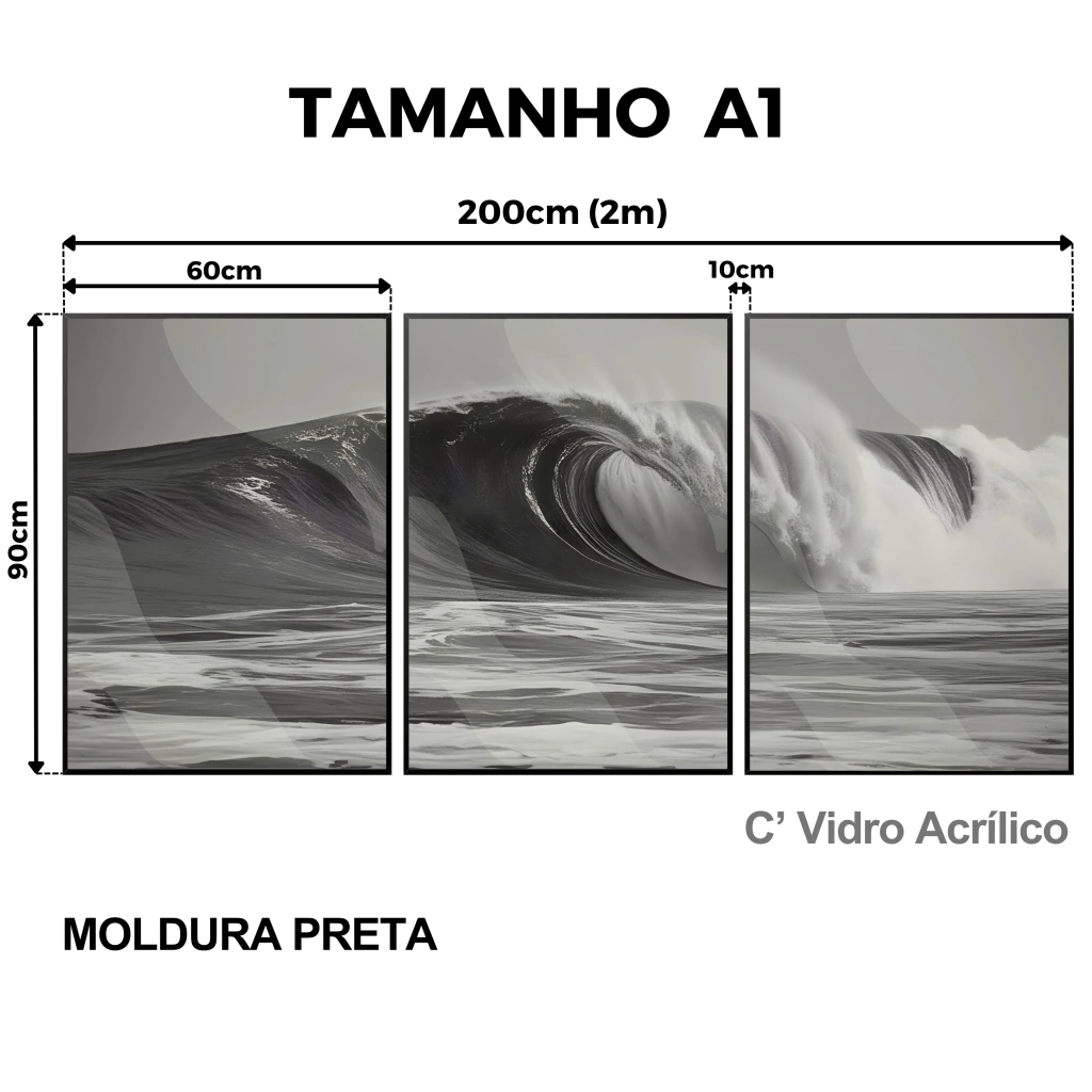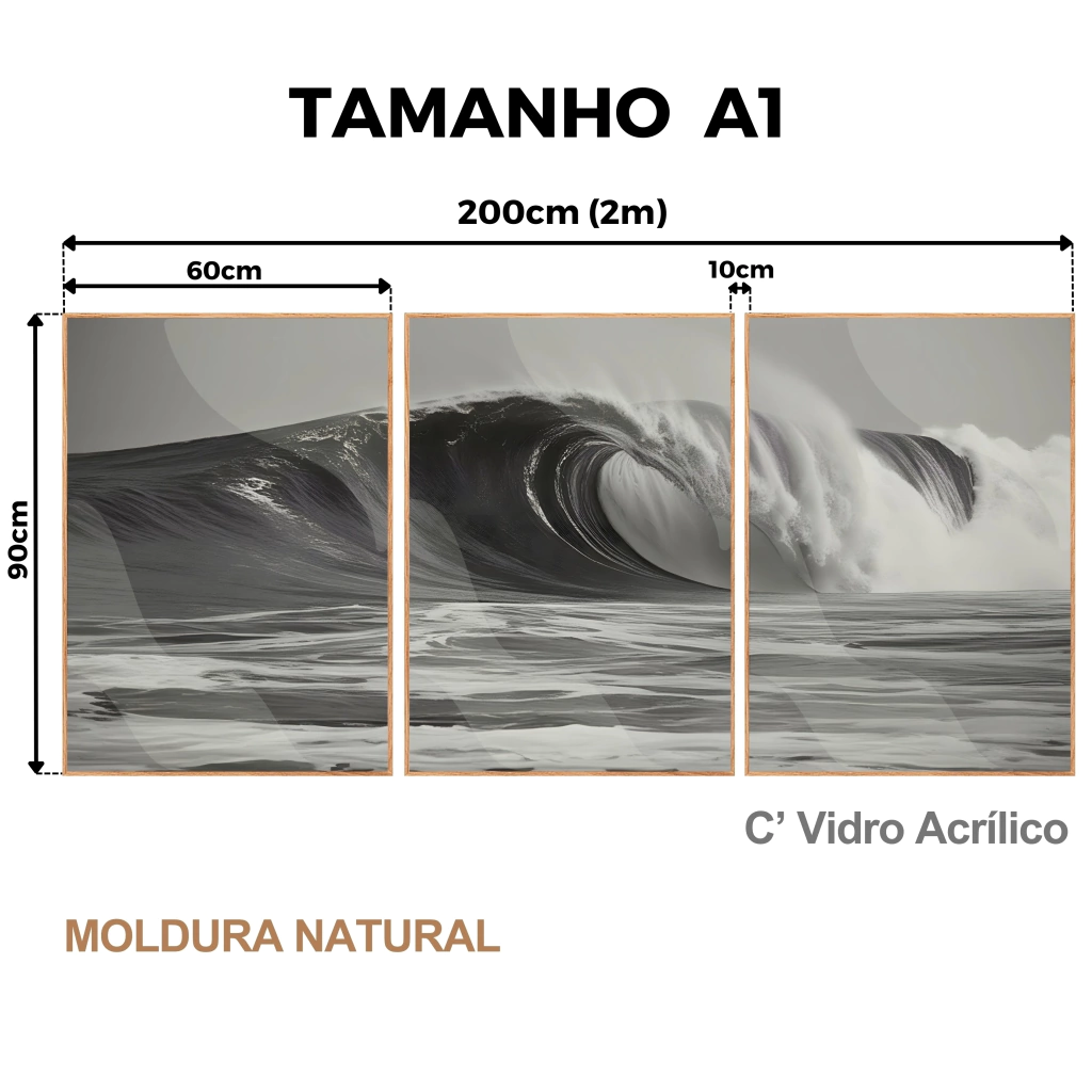 • Medidas: 30cm de largura x 40cm de altura cada quadro / Total: 90cm de largura