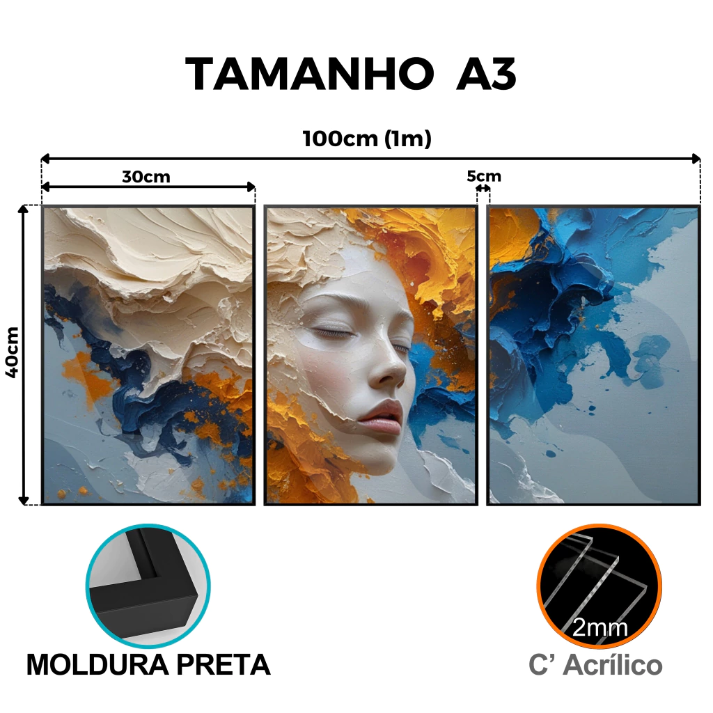 • Medidas: 30cm de largura x 40cm de altura cada quadro / Total: 90cm de largura