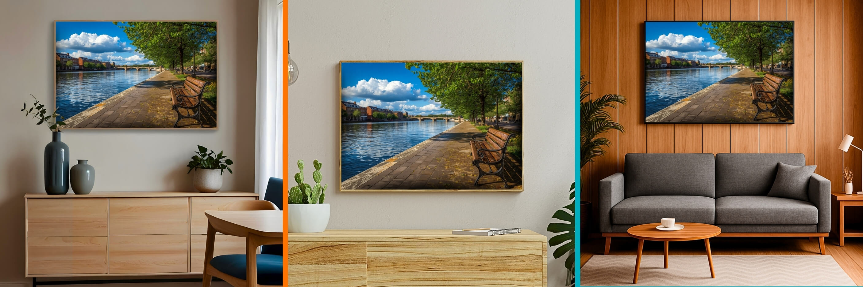 Moldura de Madeira Laqueada: Nossa moldura é feita de madeira eucalipto e recebe uma camada de pintura laqueada para proporcionar um acabamento sofisticado e durável. Ela é projetada para realçar a beleza da sua obra de arte.