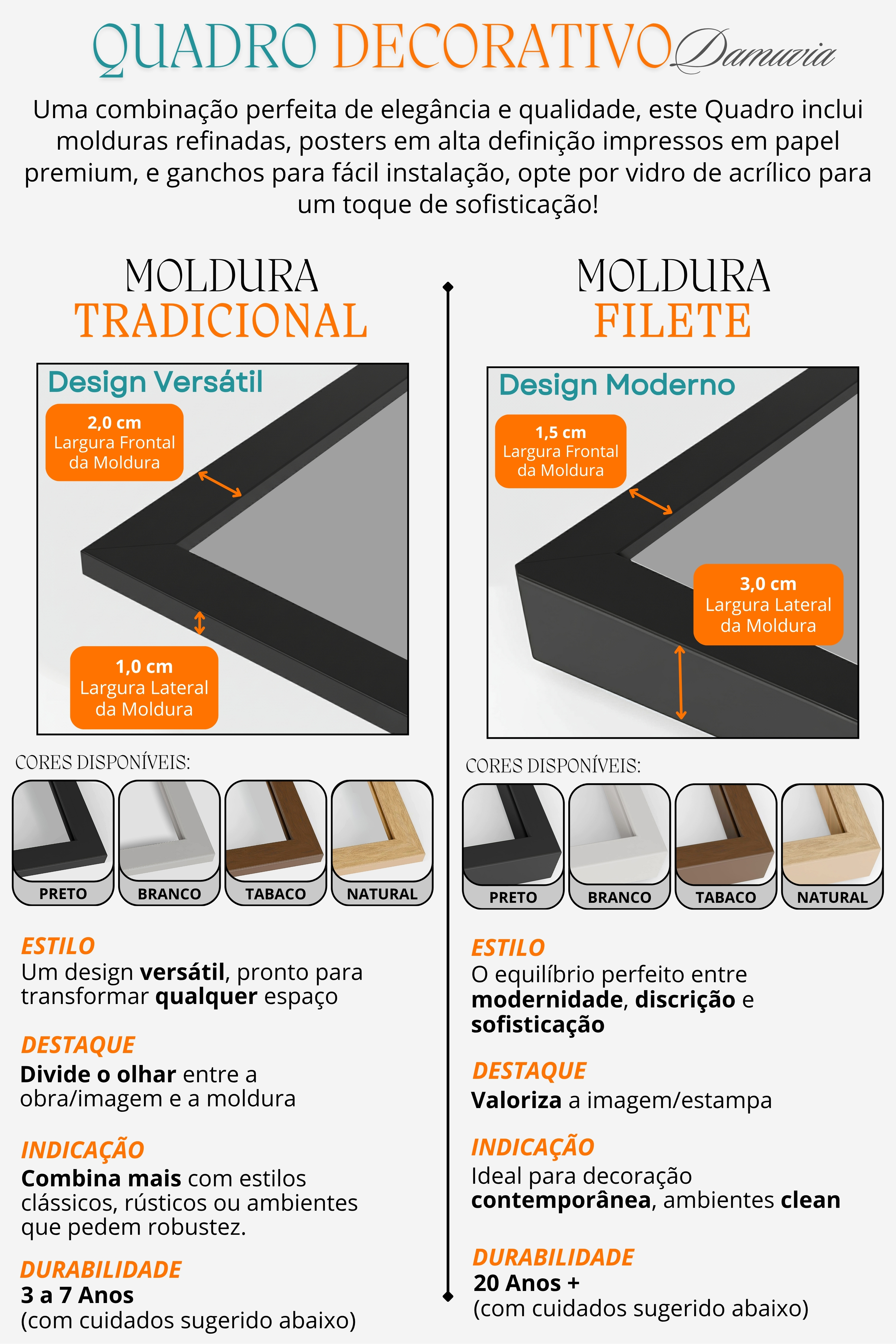 Nossos quadros decorativos são projetados para serem uma combinação perfeita de qualidade, estilo e praticidade. Eles são ideais para qualquer ambiente, seja na sala, quarto, escritório ou qualquer espaço que você desejar transformar com arte de alta qualidade.